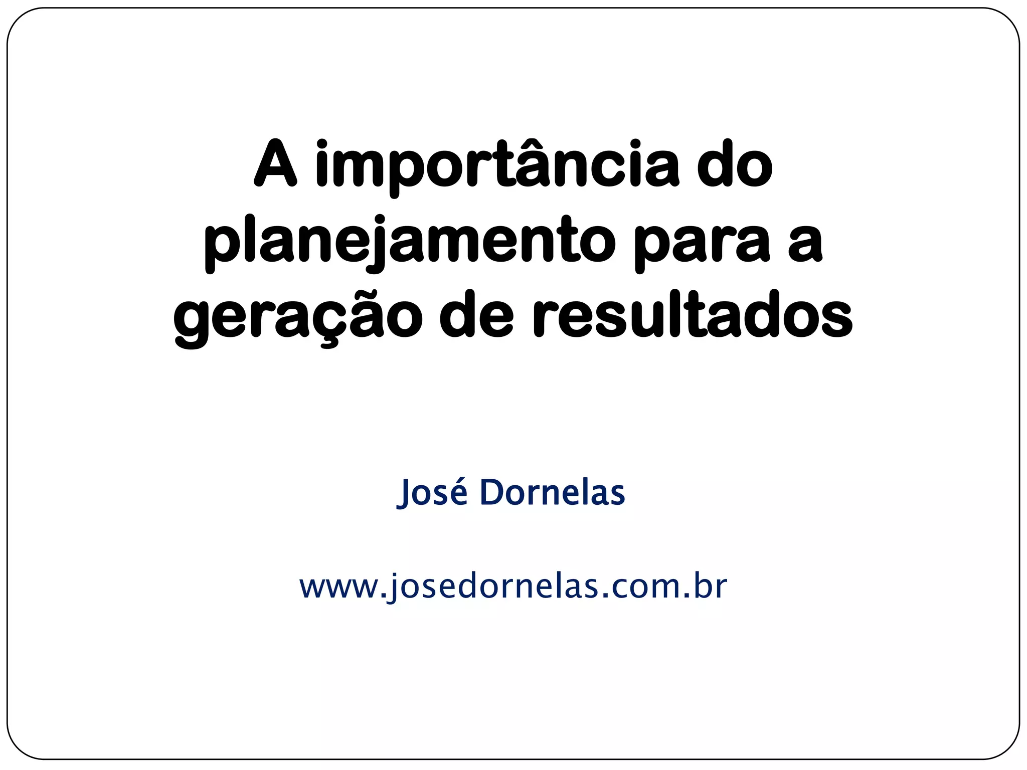 O documento discute a importância do planejamento para o sucesso de negócios. Apresenta dados mostrando que o planejamento aumenta em 60% a probabilidade de êxito e discute vários modelos e etapas do planejamento, incluindo análise de oportunidade, mercado, equipe, finanças e estratégia. Defende que o planejamento é essencial para a tomada de decisões e geração de resultados nas organizações.