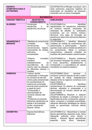Este documento apresenta o planejamento didático de uma professora para a 4a quinzena do 1o bimestre do 3o ano. O tema central é o Bioma Pantaneiro e o Cerrado, com foco nas disciplinas de Língua Portuguesa, Matemática, Geografia, História e Ciências. O planejamento inclui os objetivos, conteúdos e habilidades a serem trabalhadas em cada disciplina, bem como a organização semanal das aulas.