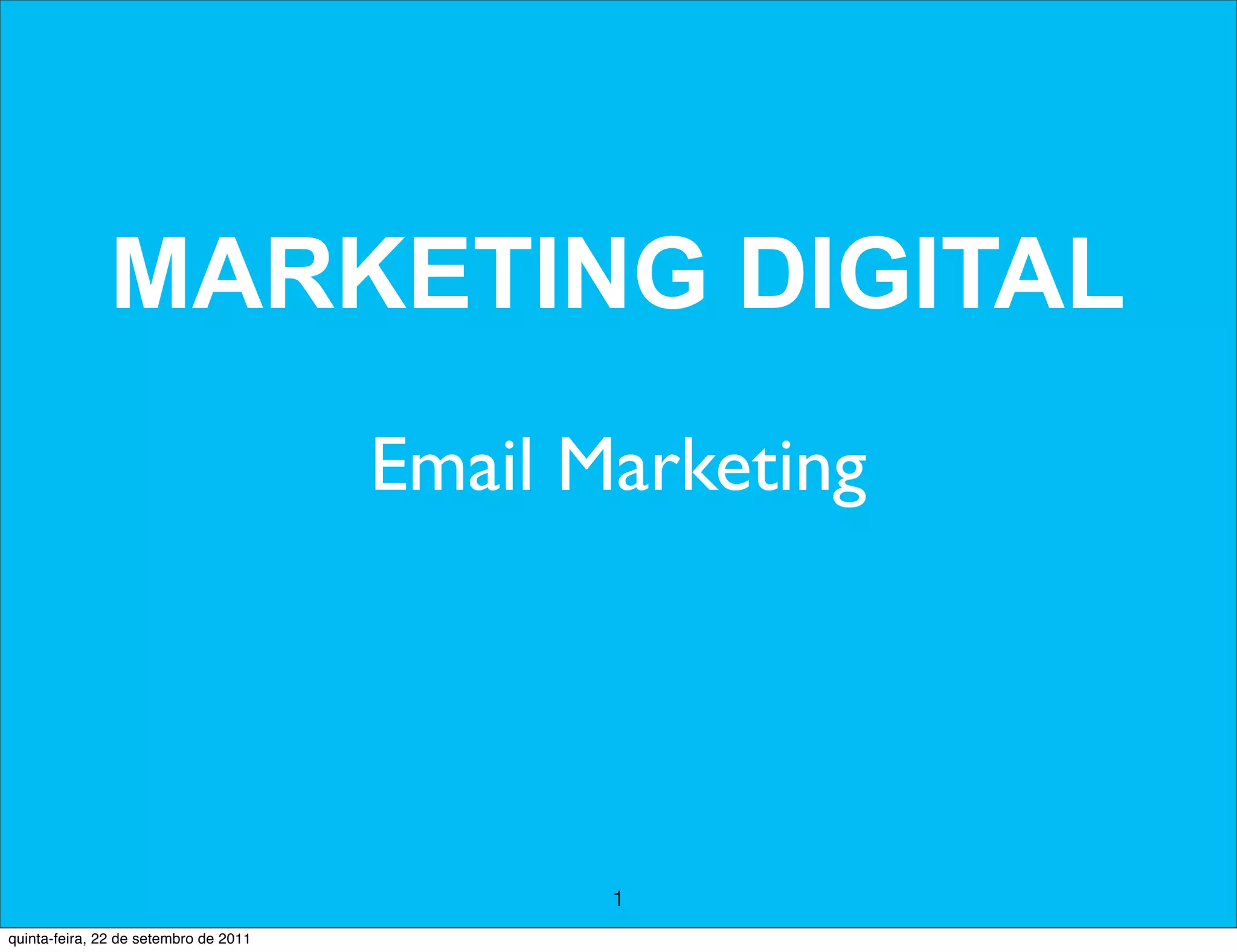 O documento aborda estratégias de marketing digital, com foco em e-mail marketing e marketing viral. Destaca a importância de enviar informações relevantes e segmentadas, além de regras éticas e práticas recomendadas para e-mail marketing. Também discute técnicas de marketing viral, como criação de conteúdos surpreendentes e engajamento através de mídias sociais e widgets.