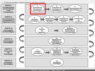O documento discute a evolução do pensamento estratégico ao longo da história, desde as estratégias militares na Antiguidade até os modelos modernos de estratégia empresarial. Apresenta conceitos como a matriz SWOT e os modelos de Porter sobre vantagem competitiva. Conclui ressaltando a importância do planejamento estratégico para a sobrevivência e evolução sustentável das organizações.