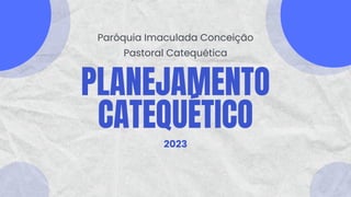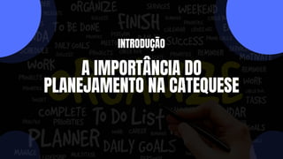 O documento discute a importância do planejamento na catequese. Ele explica que planejar ajuda a tornar a ação catequética mais eficiente e organizada. Além disso, discute como o planejamento pode ajudar a diminuir a improvisação e promover uma catequese mais eficaz na evangelização.