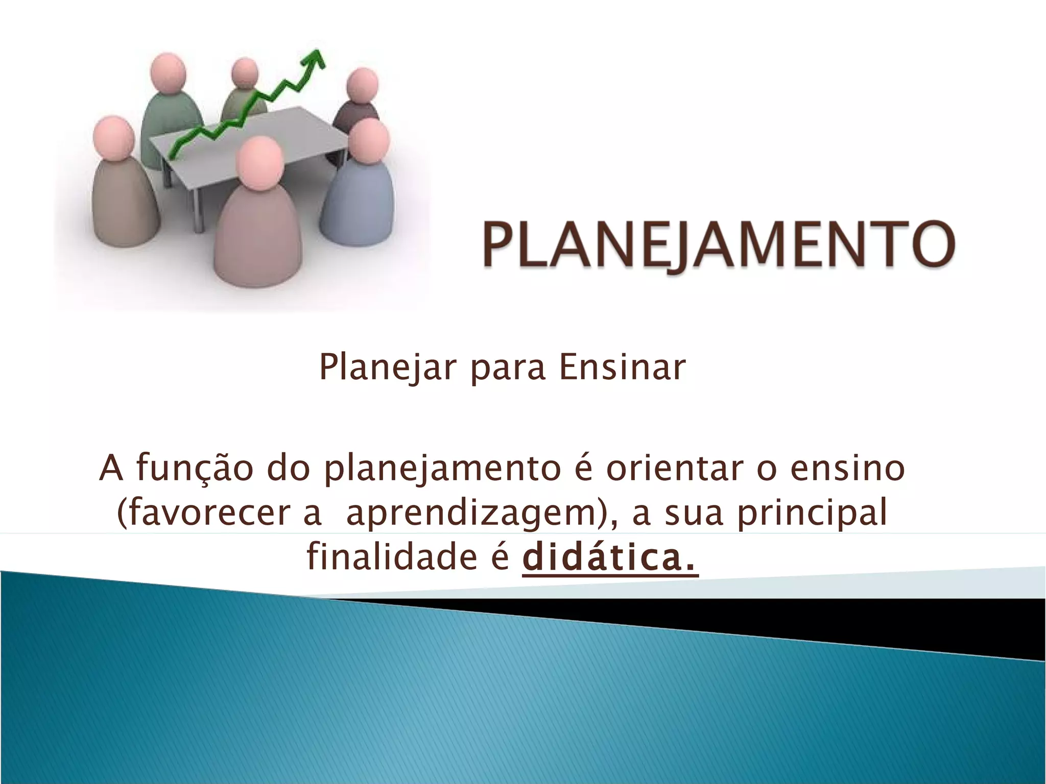 O documento discute a importância do planejamento no ensino, destacando que ele deve orientar a aprendizagem e definir metas claras. Também aborda características como a recorrência dos conteúdos, a diversidade de abordagens e a necessidade de reajuste com base na prática. Por fim, menciona a avaliação por meio de portfólios, que devem mostrar o desenvolvimento holístico do aluno.