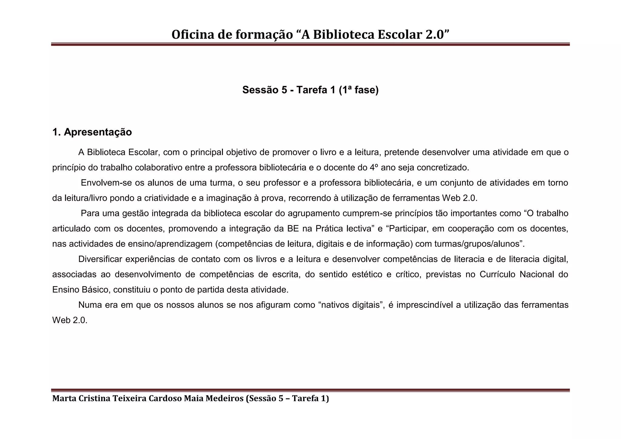 Este documento descreve uma atividade proposta pela bibliotecária escolar para uma turma do 4o ano. Os alunos serão divididos em grupos para criar histórias ficcionais baseadas em imagens do livro "O Tubarão na Banheira", usando a ferramenta Batalugu para criar livros digitais e o Podomatic para gravar podcasts sobre os seus trabalhos. A atividade tem como objetivo promover a leitura, o trabalho colaborativo e o desenvolvimento de competências digitais.