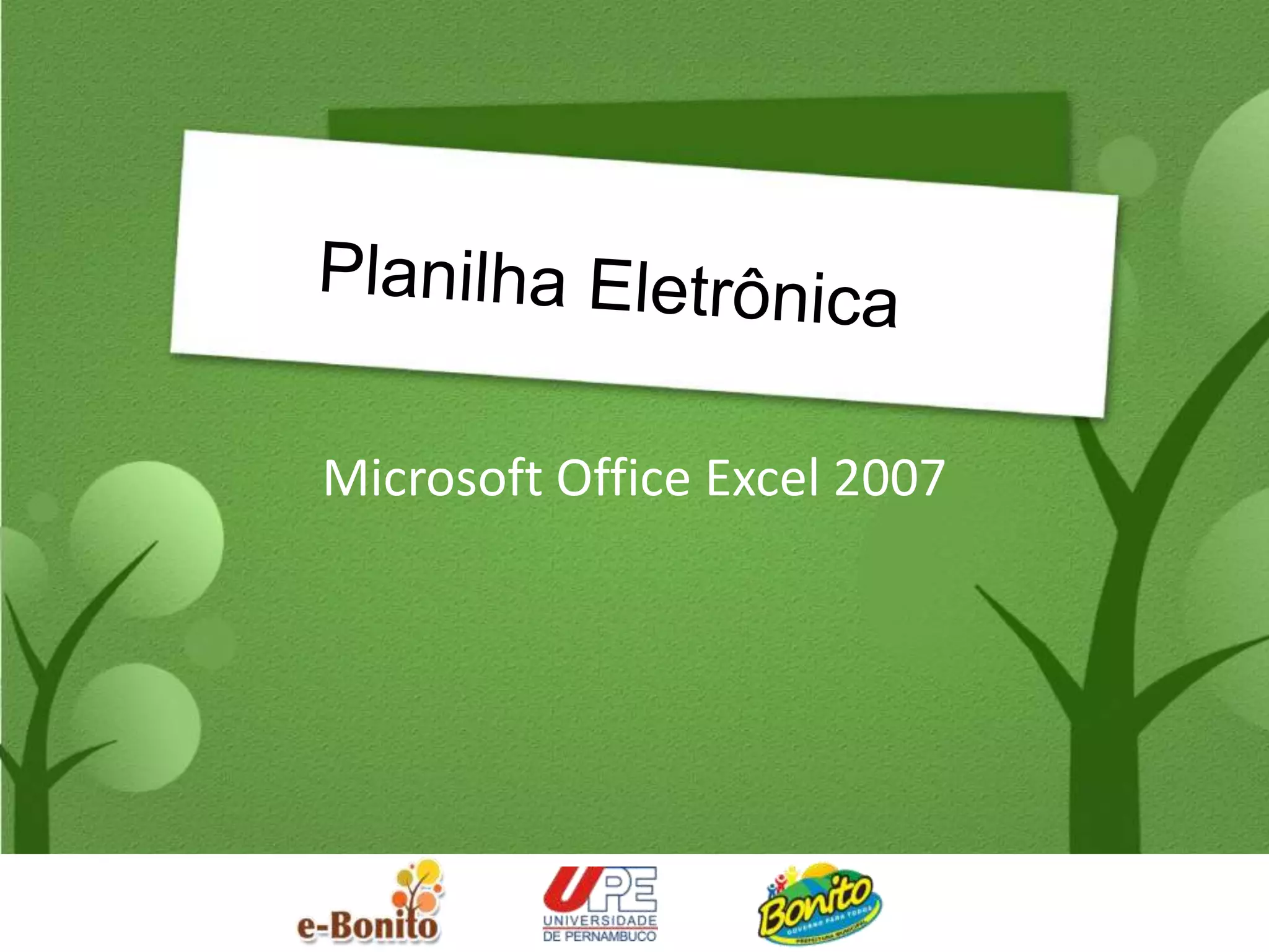 Este documento fornece uma introdução às principais ferramentas e funcionalidades do Microsoft Excel 2007, incluindo formatação de células, inserção de fórmulas e funções, classificação de dados, construção de gráficos e mais. O foco é ensinar os conceitos básicos necessários para começar a utilizar o Excel de forma eficiente no trabalho diário.