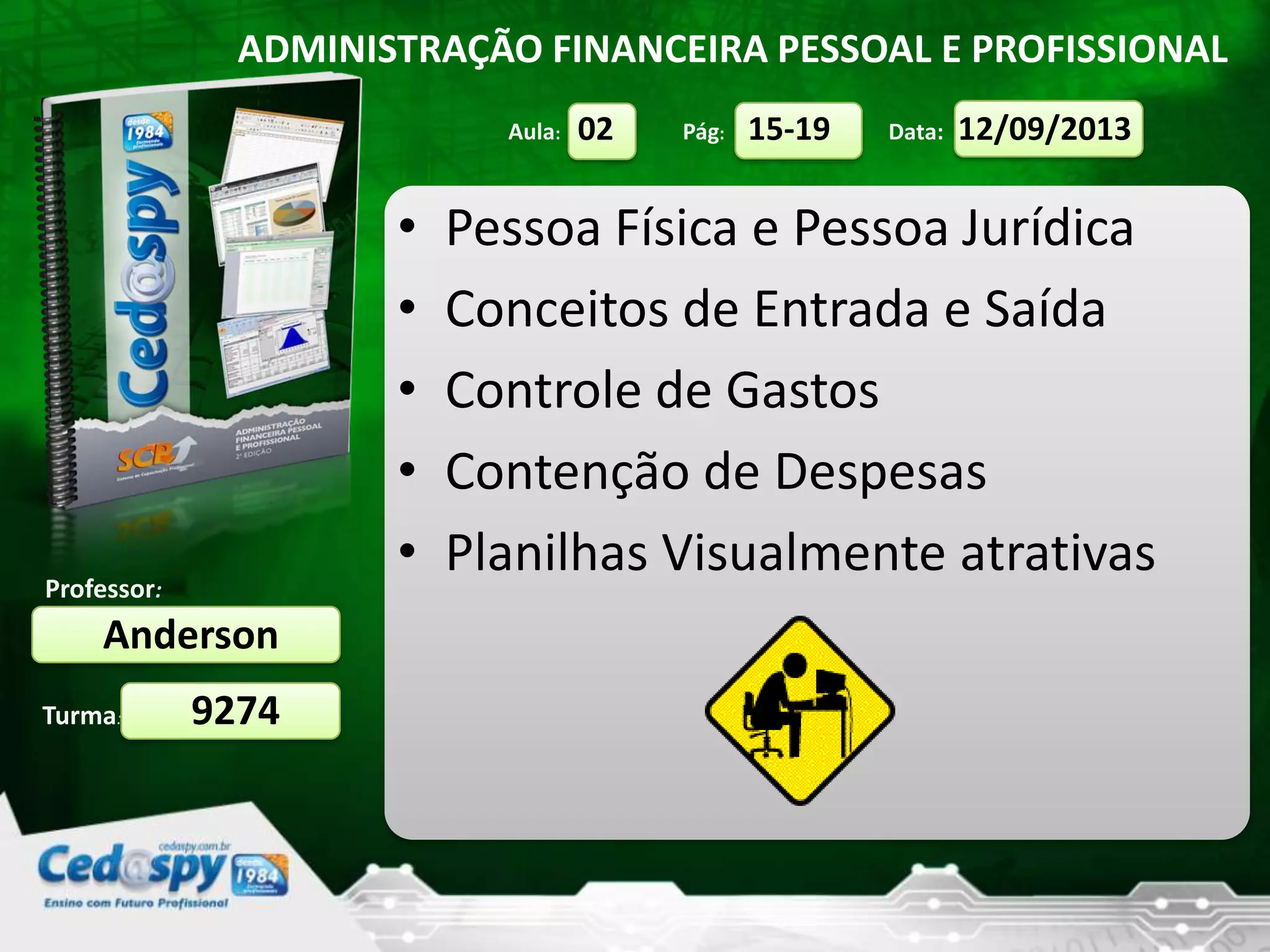 1) O documento discute conceitos de administração financeira pessoal e profissional, incluindo a diferença entre pessoa física e jurídica.