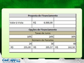 2) Apresenta um caso do Ricardo que comprou um carro sem considerar todos os custos e agora precisa de um plano para conter despesas.