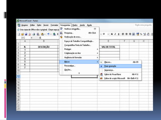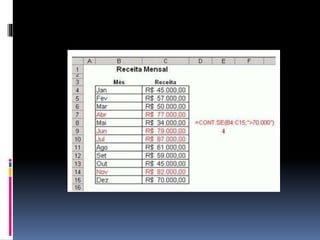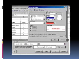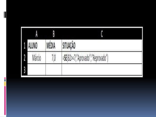 As planilhas eletrônicas permitem realizar cálculos matemáticos de forma rápida e organizada. O documento descreve a história das planilhas eletrônicas desde o VisiCalc, os principais softwares disponíveis como Excel e Calc, e recursos como fórmulas, formatação condicional e criação de gráficos.
