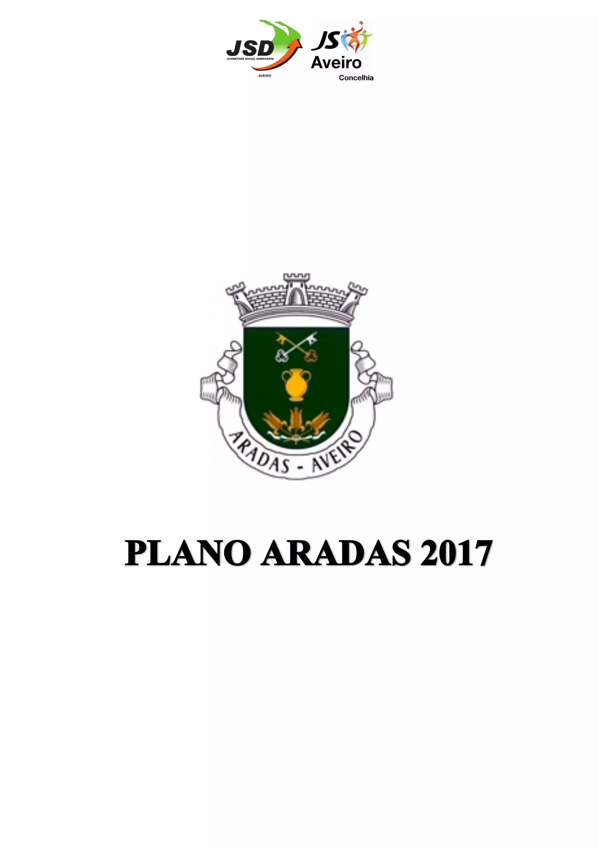 O documento descreve o plano de ação da Juventude Social Democrata (JSD) para a freguesia de Aradas nos próximos quatro anos. A JSD elaborou este plano em conjunto com a Juventude Socialista (JS) para melhorar a freguesia e aproximar os órgãos locais dos cidadãos de forma próxima e honesta. O plano visa melhorar a qualidade de vida na freguesia com ações concretas em vez de grandes projetos.