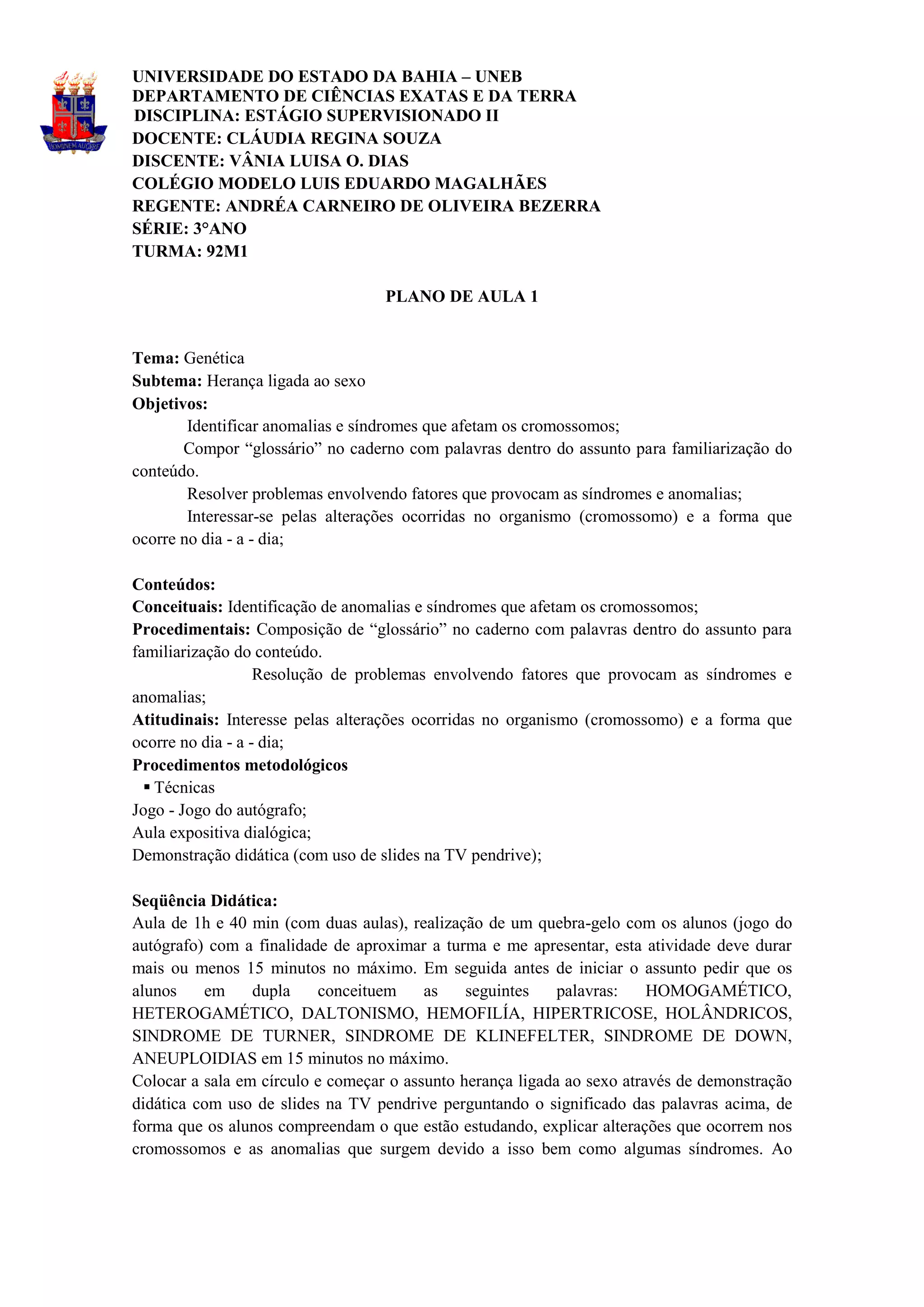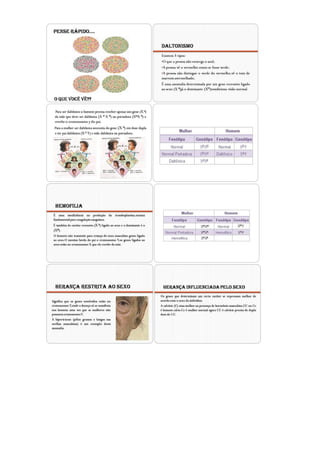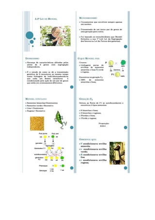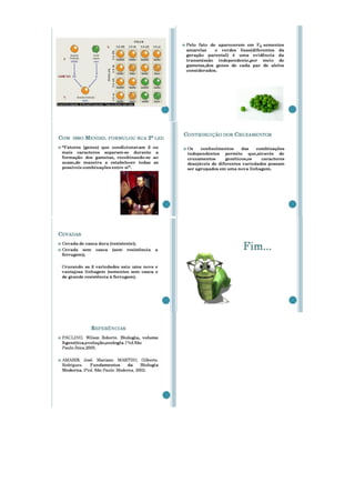 Este plano de aula aborda o tema da genética, focando na herança ligada ao sexo e na segunda lei de Mendel. O plano descreve os objetivos, conteúdos, procedimentos metodológicos e avaliação de quatro aulas sobre este tópico. As aulas incluem discussões, demonstrações, resolução de exercícios e conceituação de termos importantes da genética como diibridismo e monoibridismo.