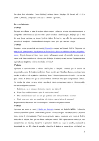Este plano de aula propõe estudar o gênero causo através de 20 aulas. Os alunos irão assistir e analisar causos, aprender a diferenciar a linguagem oral da escrita e praticar a retextualização de causos, passando do oral para o escrito. Em grupos, os alunos deverão selecionar um causo, transcreve-lo e reescreve-lo, recebendo feedback dos colegas para melhorar a produção final.