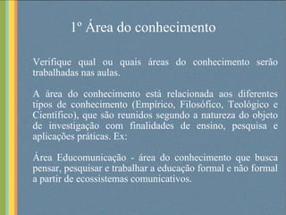 O documento fornece instruções passo-a-passo para elaborar um plano de aula eficiente, começando pela escolha da área do conhecimento e do tema, definição de objetivos, pesquisa de materiais, criação de uma metodologia, início, desenvolvimento e fechamento da aula, avaliação e recursos a serem utilizados.
