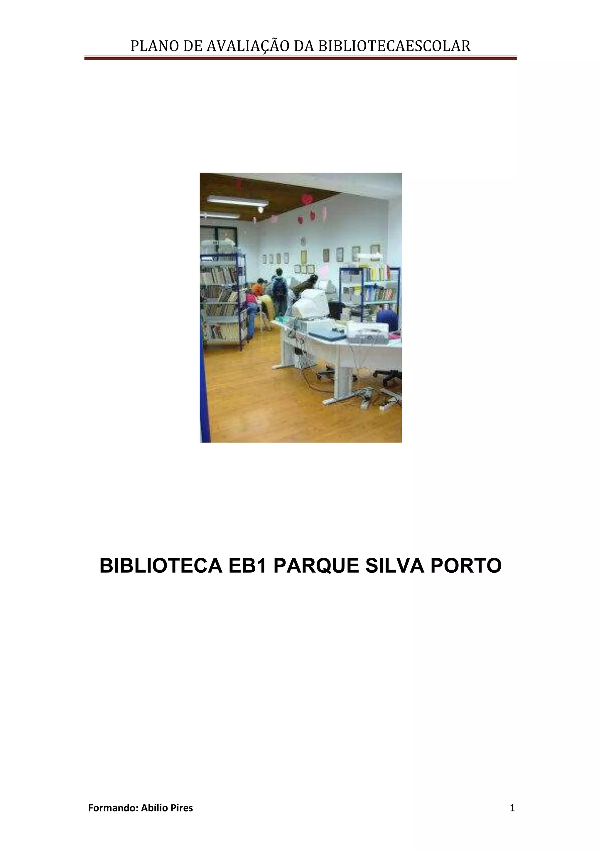 Este plano avalia o impacto da biblioteca da EB1 Parque Silva Porto na promoção da leitura e literacia. Será avaliado o domínio da leitura e literacia através de questionários a alunos, professores, pais e análise de documentos. O plano inclui a recolha de dados, análise, relatório e plano de melhoria para apresentar à escola.