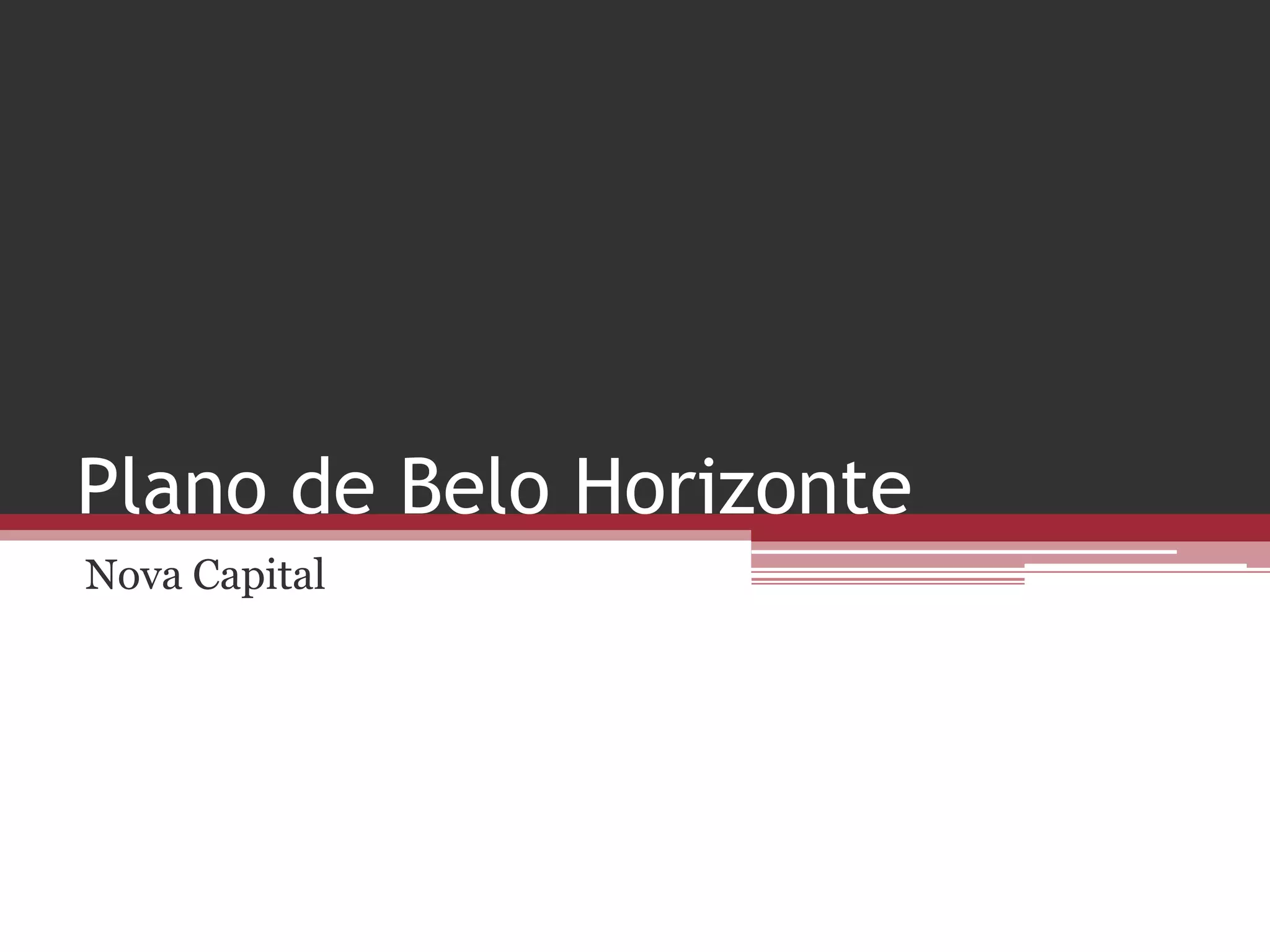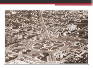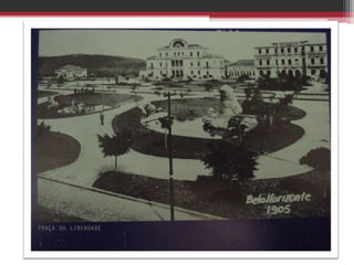 O documento aborda o planejamento e a construção de Belo Horizonte como nova capital de Minas Gerais, destacando suas condições geográficas, sanitárias e econômicas que favoreceram sua escolha em 1893. Apresenta também as intenções do projeto de estabelecer uma cidade moderna, unificada e funcional, inspirada em experiências urbanísticas europeias e norte-americanas. Além disso, menciona a evolução da cidade e as críticas ao seu planejamento ao longo do tempo.