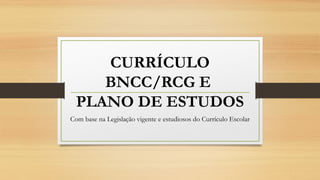O documento discute os elementos-chave do planejamento curricular escolar com base na legislação e autores do currículo, incluindo a BNCC, RCG, Projeto Político Pedagógico, Regimento Escolar e Plano de Estudos. Ele destaca que o Plano de Estudos deve organizar o currículo de acordo com a BNCC e características locais, e que os professores devem reelaborar os Planos de Estudos existentes para incorporar competências, objetivos e conteúdos da nova proposta curricular.