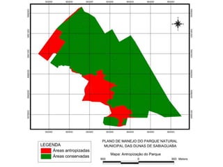 O documento apresenta um esboço metodológico para o plano de manejo do Parque e da APA de Sabiaguaba. Ele descreve as diferentes fases do projeto, incluindo seminários, trabalhos de campo, oficinas e zoneamento ambiental para produzir diagnósticos, mapas temáticos e um plano de manejo final com diretrizes para a gestão das unidades de conservação.
