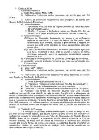 O documento descreve um Estágio de Atualização Pedagógica (ESTAP) para capacitar instrutores militares recém-nomeados. O estágio consiste em uma fase não-presencial de 40 horas na plataforma EB-AULA e uma fase presencial de uma semana com aulas sobre novas tecnologias, programa militar do século XXI e metodologias de ensino. Os instrutores serão avaliados em situações-problema aplicando novas abordagens de ensino.