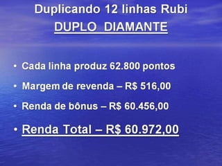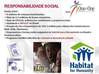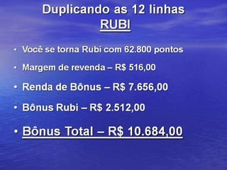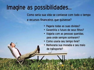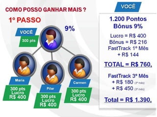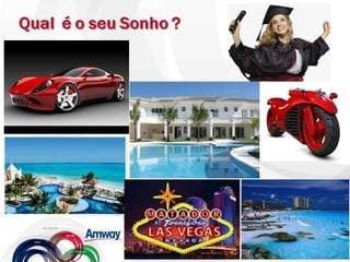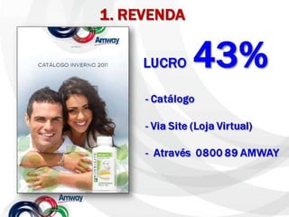 O documento descreve uma oportunidade de negócios na venda direta de produtos de limpeza e cosméticos da empresa Amway, incluindo informações sobre o mercado de venda direta no Brasil e no mundo, os produtos oferecidos e seus benefícios, além de detalhar o plano de vendas e como se cadastrar na rede de negócios da empresa.