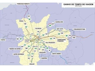 O documento descreve o plano de expansão do sistema de transporte metropolitano de São Paulo até 2010, incluindo a expansão de linhas de metrô e trens, a compra de novos trens, e a melhoria da qualidade do serviço em três frases ou menos.