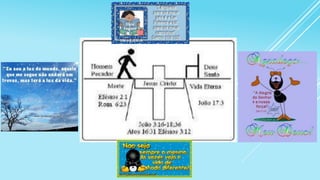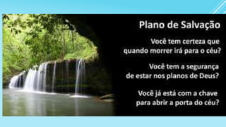 1. O documento apresenta um plano de salvação em 6 pontos que explicam como alguém pode ser salvo: reconhecendo-se como pecador, arrependendo-se, crendo que Jesus pagou pelos pecados, recebendo-o como Senhor e tendo vida eterna.