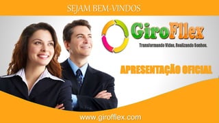 O documento descreve o sistema GiroFllex, que incentiva doações espontâneas entre seus participantes para distribuir renda. O sistema funciona com cada pessoa indicando 2 outras, que por sua vez indicam mais 2, totalizando 4 "netos". Ao receber doações desses 4 netos em 6 ciclos, o valor é repassado para a próxima etapa. Não há custos ou lucros para empresas, com depósitos diretos nas contas e suporte 24 horas.