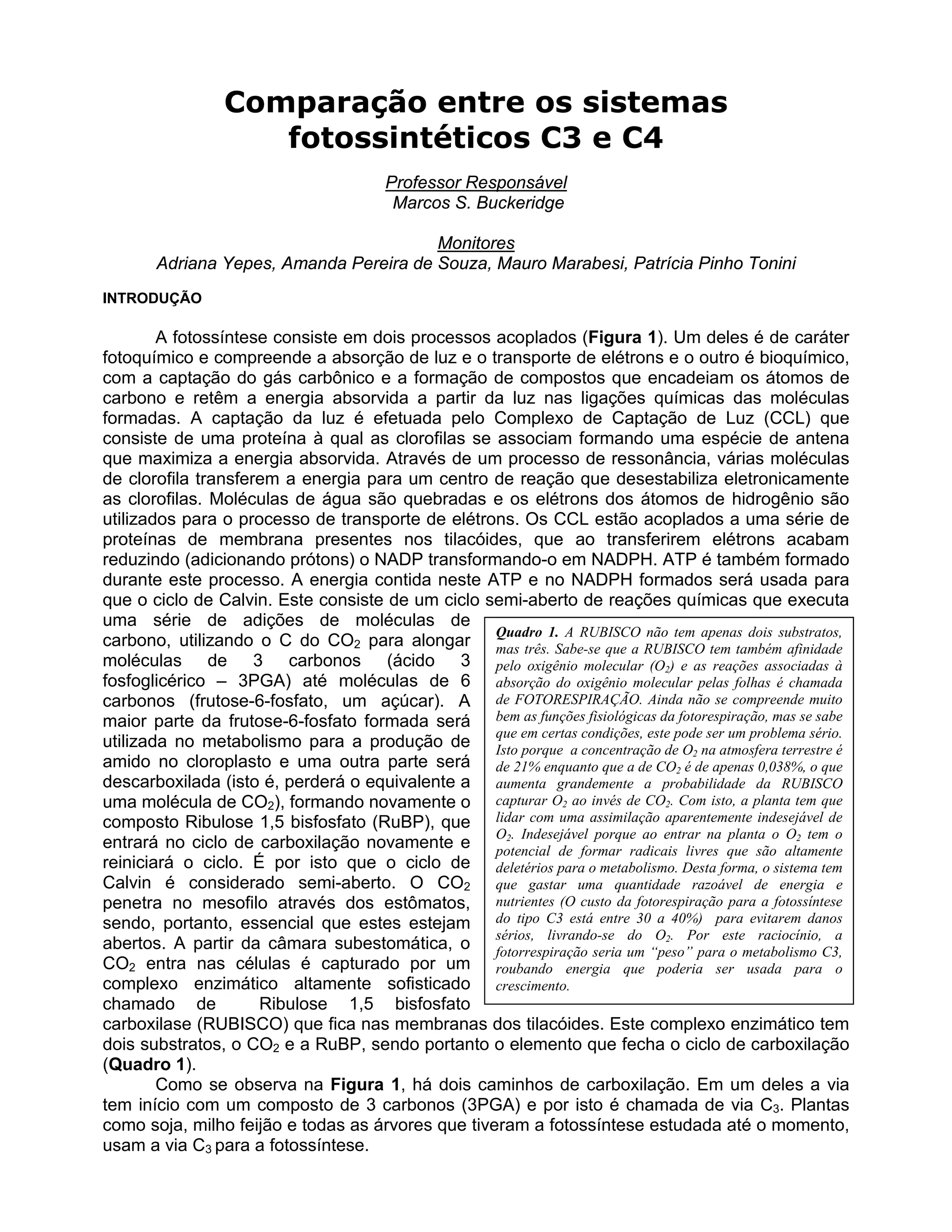 1) A RUBISCO, enzima chave da fotossíntese, tem três substratos: CO2, RuBP e O2. A absorção de O2 causa fotorrespiração, que desperdiça energia.