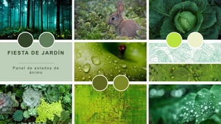 Este documento apresenta três painéis de estado de ânimo para uma festa de jardim, incluindo "Avenida del Océano", "Fiesta de Jardín" e "Buenas Vibras", sugerindo títulos adicionais para cada painel.