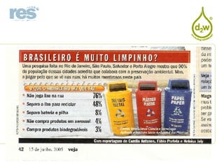 O documento discute o impacto negativo dos plásticos no meio ambiente, destacando que 56% do lixo plástico é composto por embalagens e que mais de 80% dos plásticos são descartados após uma única utilização. Em 2004, o Brasil gerou 2.177.799 toneladas de resíduos plásticos, dos quais apenas 16,5% foram reciclados. A documentação também enfatiza a importância de reduzir, reutilizar e reciclar embalagens para minimizar a poluição e proteger a vida marinha.