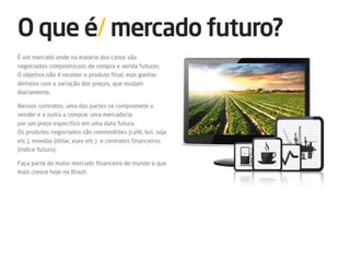 Descubra como operar no fascinante e dinâmico mercado de futuros. Você já se imaginou comprando e vendendo café, soja, milho e até dólar na Bolsa de Valores? Conheça o mundo de oportunidades do mercado futuro.