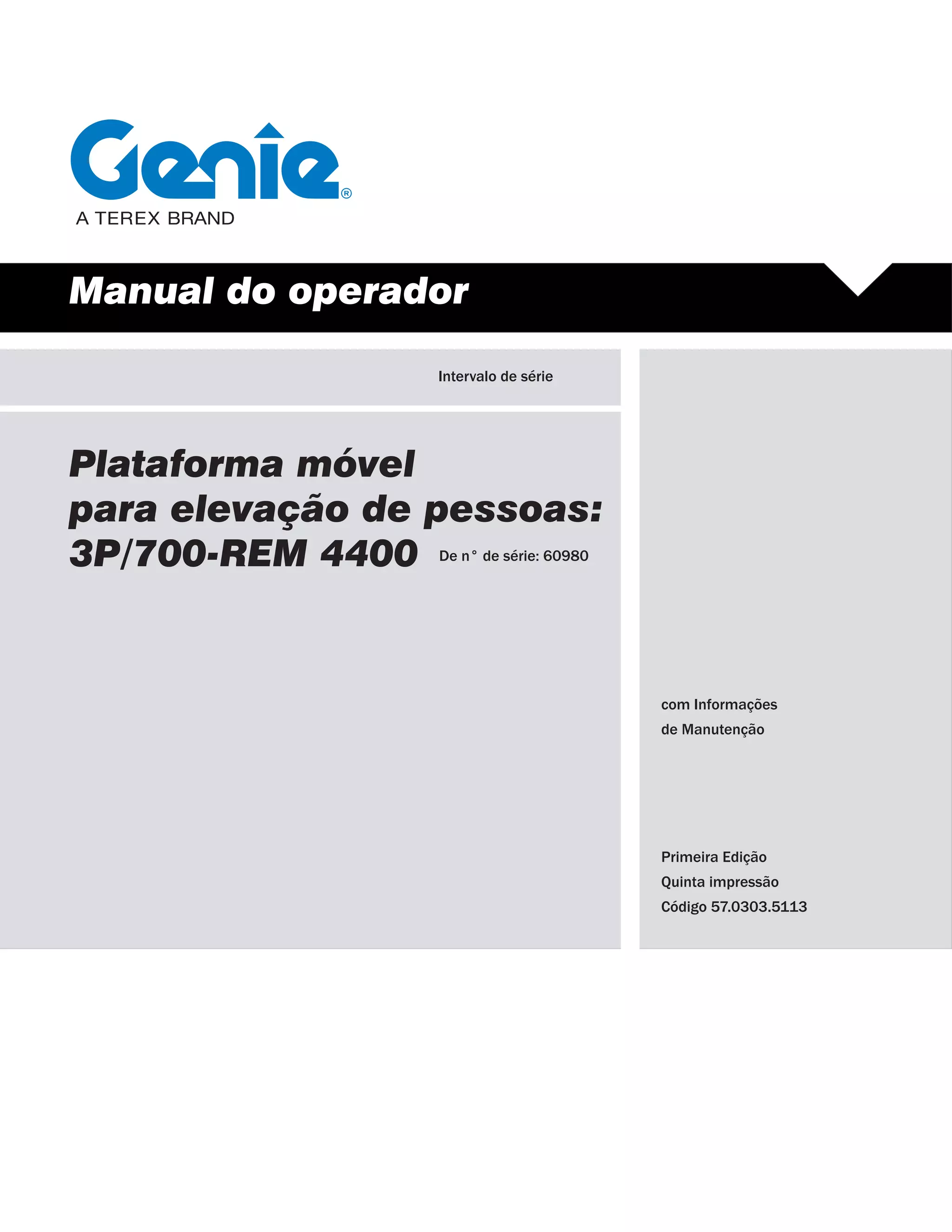 Este manual fornece instruções sobre o uso seguro e manutenção de uma plataforma móvel elevatória de pessoas. Detalha os principais componentes, simbologia de segurança, capacidade de carga, procedimentos operacionais e manutenção preventiva. O manual visa garantir que apenas operadores treinados e autorizados utilizem a máquina de forma segura.