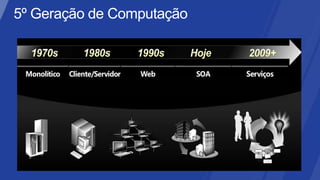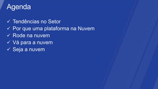 O documento discute as vantagens de se hospedar aplicações na nuvem, incluindo redução de custos de operação, maior escalabilidade e inovação. Também apresenta os serviços da plataforma Microsoft Azure como computação, armazenamento, banco de dados e filas de mensagens.