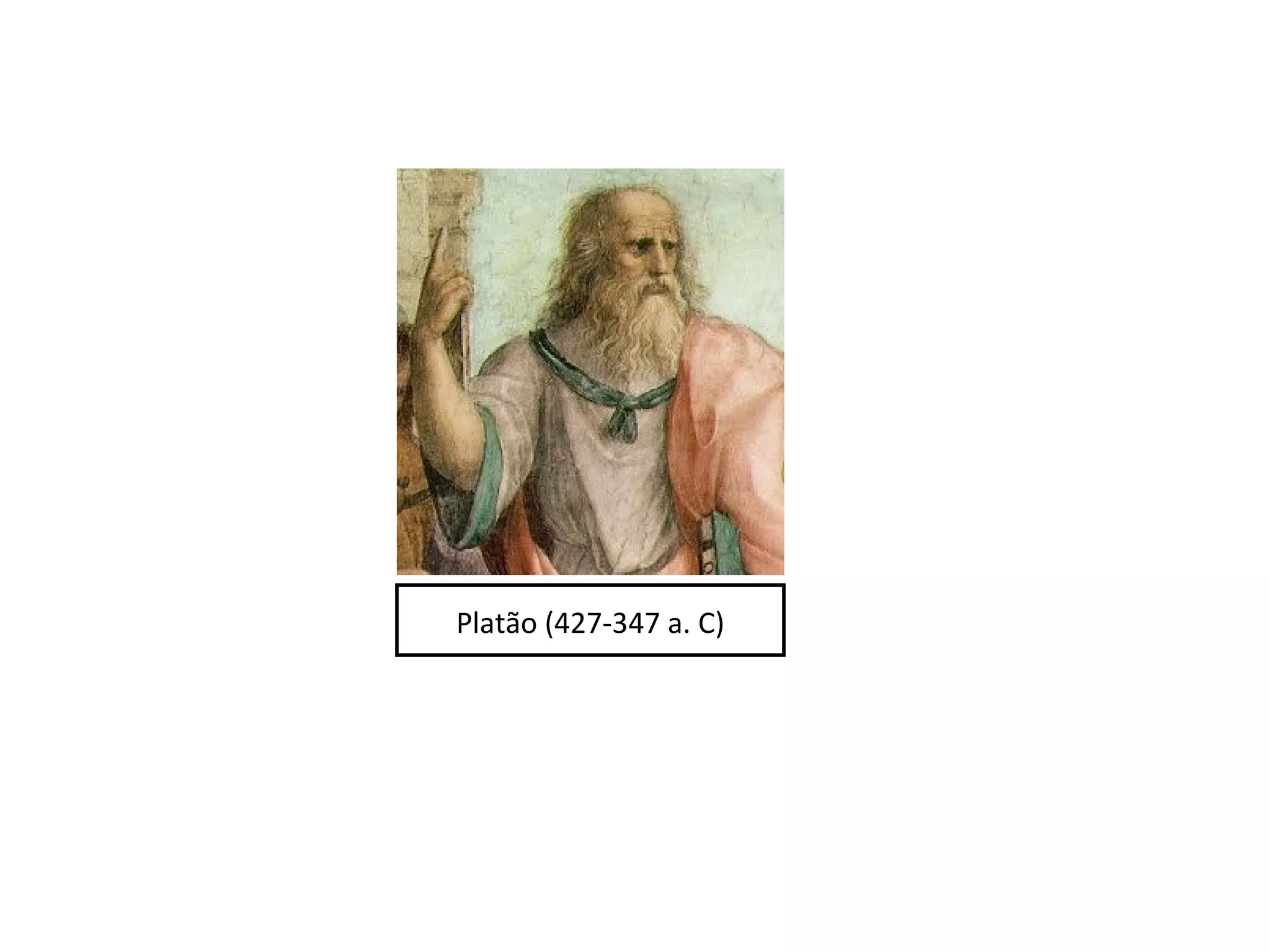 O texto resume os três períodos do pensamento de Platão (Socrático, Intermediário e Maturidade), sua teoria das Ideias e da reminiscência, a dualidade platônica entre alma e corpo, sua concepção de beleza e arte, e a proposta de um Estado ideal regido pela razão.