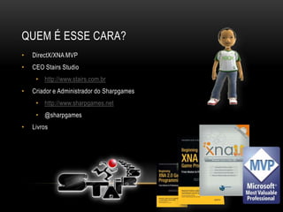 O documento apresenta o SDK do PlayStation Mobile para desenvolvimento de jogos e aplicativos para dispositivos PlayStation como o PS Vita. O SDK utiliza C# e permite desenvolvimento cross-platform, com bibliotecas para gráficos, áudio, entrada, armazenamento e mais. Inclui uma engine 2D e ferramentas para criação de interface gráfica. O documento demonstra exemplos básicos de programação com o SDK.