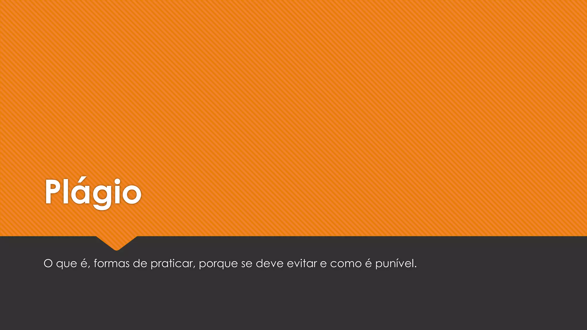 O documento discute o que é plágio, suas formas, como evitá-lo e como é punido. O plágio é apresentar o trabalho intelectual de outra pessoa como seu, sem dar os devidos créditos. Existem vários tipos de plágio, como direto, parcial e mosaico. Para evitar o plágio, deve-se pesquisar bem o assunto, anotar as fontes e apresentar a própria análise. O plágio pode levar a punições acadêmicas, no trabalho e legais.