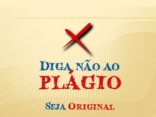 O documento discute o conceito de plágio, seus tipos e legislação relacionada. Também aborda as licenças Creative Commons que permitem compartilhamento de obras com atribuição de autoria. O plágio acadêmico é apresentado como problema crescente na era digital, devendo os estudantes citarem devidamente as fontes em suas pesquisas.