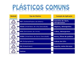 O documento lista os membros de um grupo e fornece informações sobre polímeros e plásticos. Ele define polímeros como compostos químicos de alta massa molecular resultantes de reações de polimerização e lista exemplos que não são plásticos. Também descreve propriedades dos plásticos como fusão, dissolução, reciclagem e propriedades mecânicas. Por fim, diferencia termorrígidos e termoplásticos.