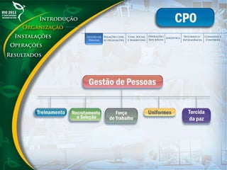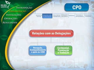 Os 5o Jogos Mundiais Militares aconteceram no Rio de Janeiro em 2011 e reuniram mais de 6 mil atletas de 111 países competindo em 20 modalidades esportivas. O Brasil sediou o evento após vencer a disputa com a Turquia devido à sua infraestrutura esportiva e experiência com grandes eventos. O evento promoveu a paz por meio do esporte e contou com a participação de 263 atletas brasileiros.