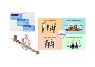 O documento discute os principais conceitos de projetos e gerenciamento de projetos, incluindo: o que é um projeto, ciclo de vida do projeto, áreas de conhecimento, partes interessadas, escopo, estrutura analítica de projeto, planejamento de tempo, sucesso do projeto, governança e PMO.