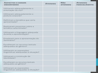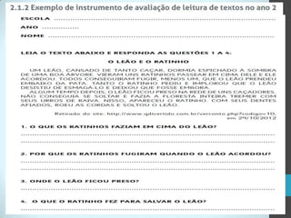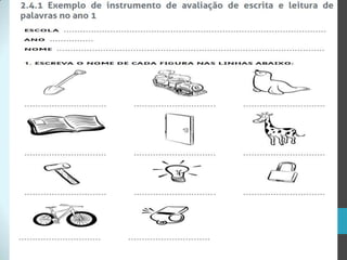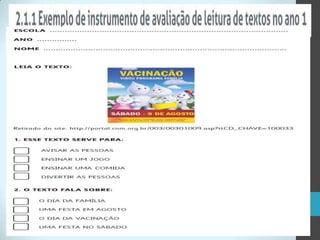 Este documento discute a avaliação da alfabetização no Brasil. Ele fornece recomendações sobre como avaliar diferentes habilidades como leitura, produção de texto, oralidade e apropriação do sistema de escrita. Também apresenta instrumentos e roteiros para avaliar essas habilidades em diferentes anos do ensino fundamental.