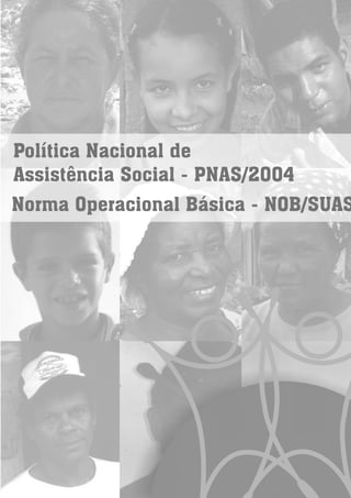 Este documento apresenta a Política Nacional de Assistência Social (PNAS) aprovada pelo Conselho Nacional de Assistência Social em 2004. A PNAS define os princípios, diretrizes e objetivos da assistência social no Brasil, bem como a organização do Sistema Único de Assistência Social (SUAS). O documento analisa a situação da assistência social no país, estabelece as proteções sociais básica e especial, e trata da gestão compartilhada, financiamento, controle social e recursos humanos do SUAS. A implantação do SU