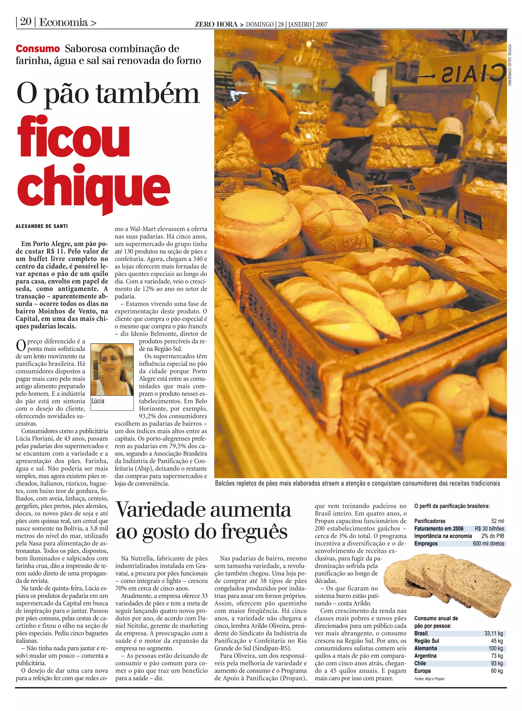 O documento discute a evolução da panificação brasileira para atender aos gostos dos consumidores, oferecendo uma variedade maior de pães, incluindo opções funcionais e especiais. O consumo de pão no Sul do Brasil cresceu 12% ao ano, com os gaúchos comendo em média 45kg por pessoa. Padarias e supermercados ampliaram suas linhas para 340 produtos, captando aqueles dispostos a pagar mais por pães diferenciados.