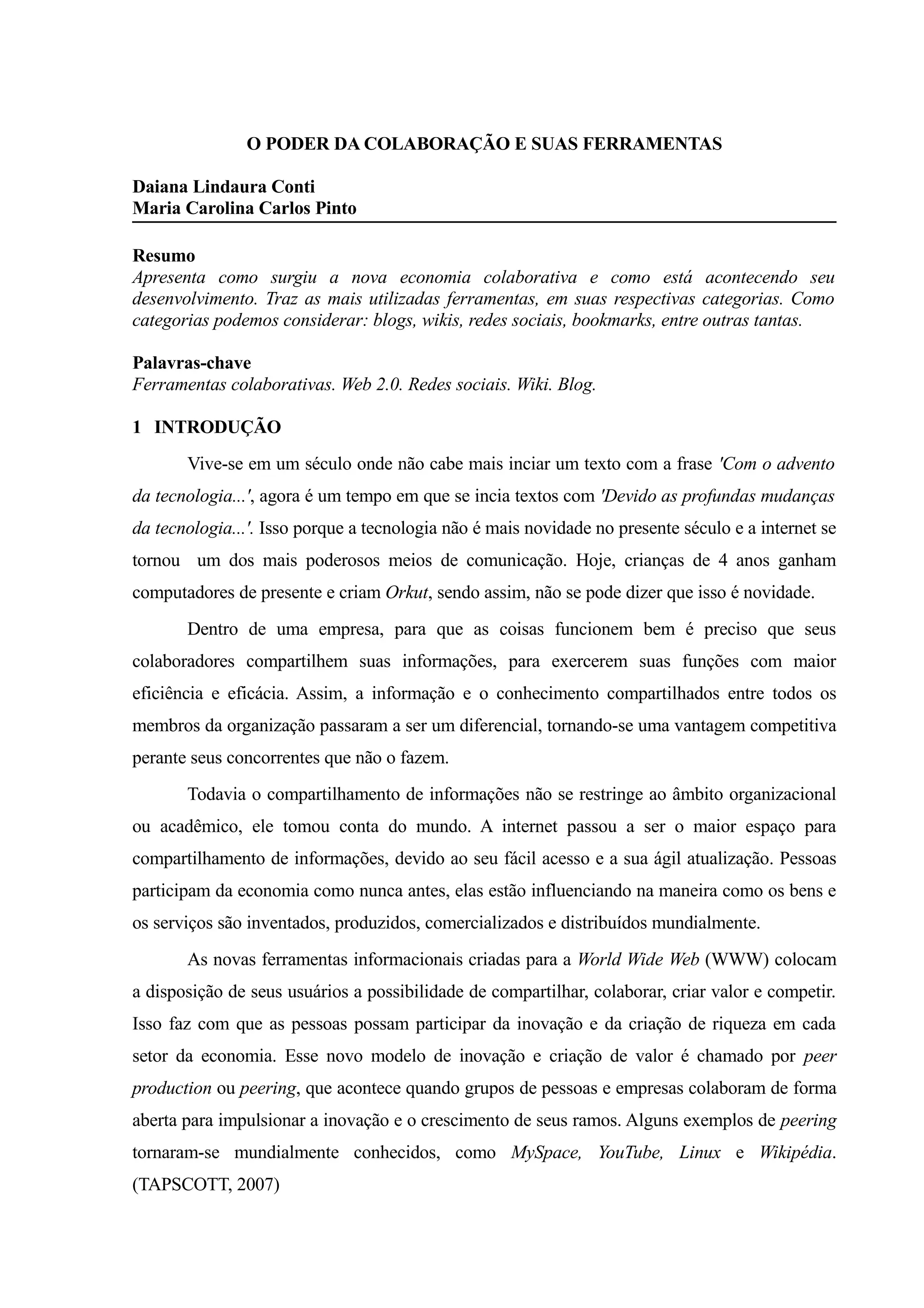 1) O documento discute o poder da colaboração e as ferramentas que facilitam a colaboração na web. 2) Ele explica como a economia colaborativa surgiu e como as ferramentas como blogs, wikis e redes sociais permitem que as pessoas compartilhem informações. 3) Também aborda como essas ferramentas colaborativas permitem que empresas e indivíduos trabalhem em conjunto de forma mais eficiente.