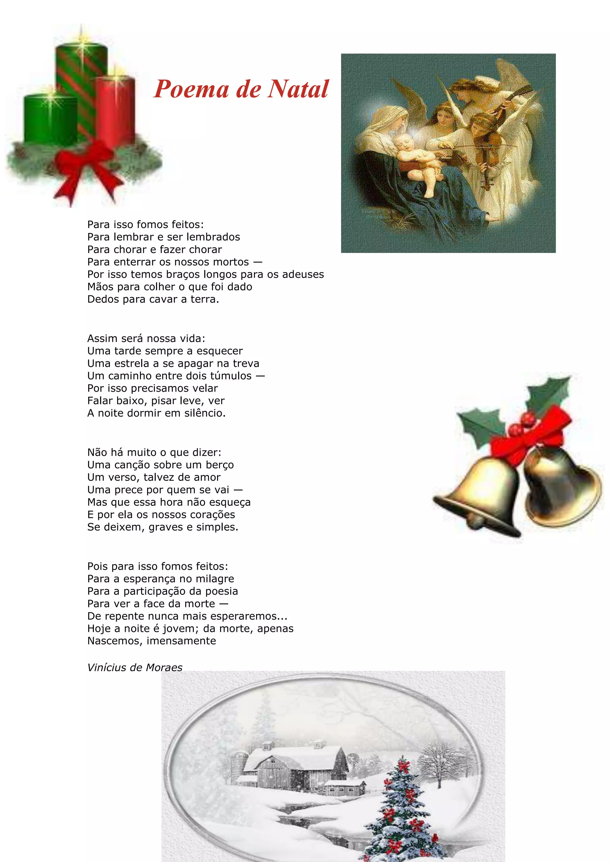 Este poema reflete sobre o propósito da vida humana, que é lembrar e ser lembrado, chorar e fazer chorar, enterrar os mortos. Fala sobre a brevidade da vida, que passa como uma tarde que se esquece e uma estrela que se apaga na escuridão. Lembra que fomos feitos para ter esperança no milagre, participar da poesia e ver a face da morte.