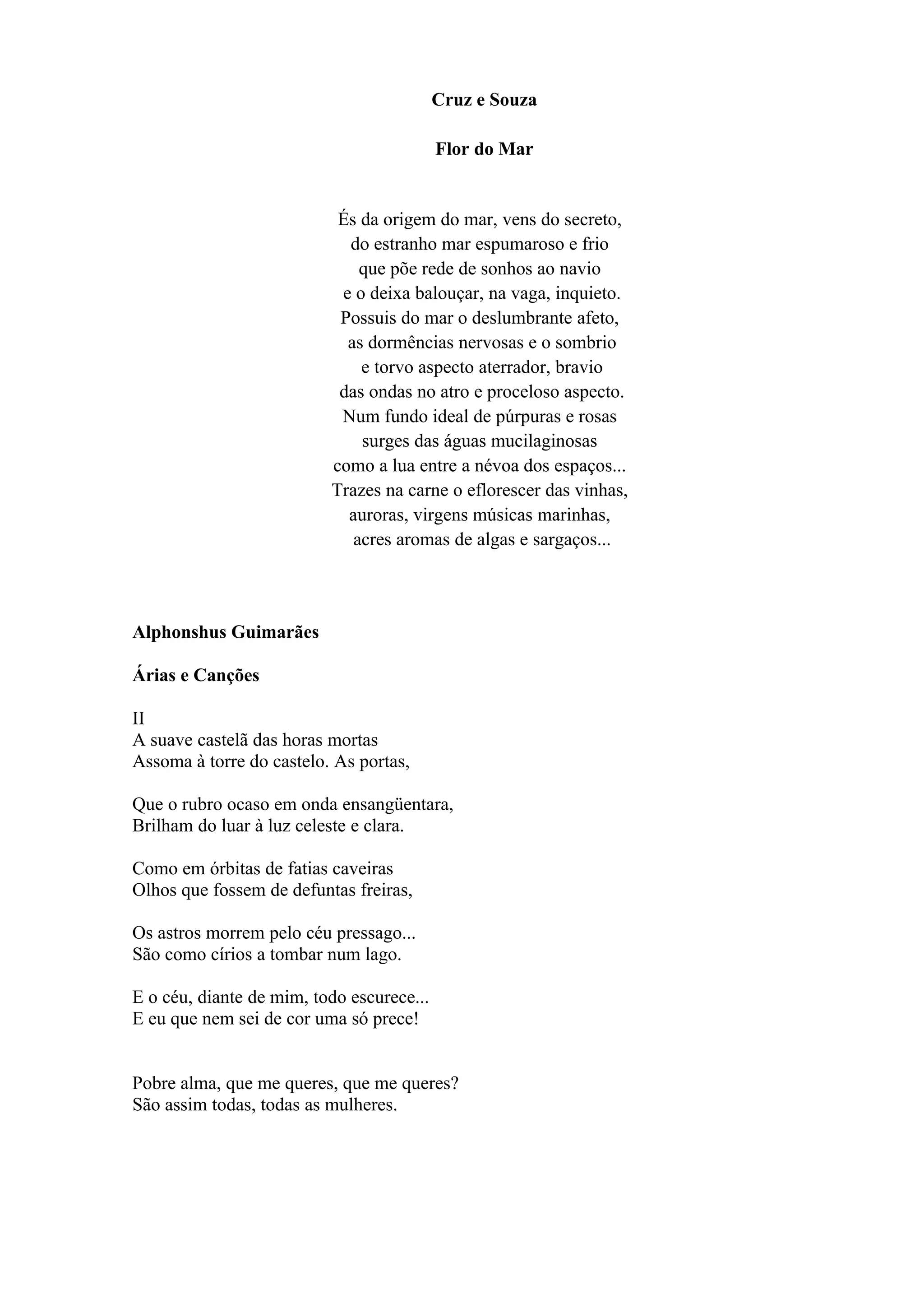 O poema descreve a origem da flor do mar e suas características, como trazer o afeto e aspectos do mar profundo como dormências nervosas e aspectos sombrios e bravios das ondas. A flor surge das águas como a lua entre a névoa, trazendo a florescência das vinhas, músicas e aromas do mar.