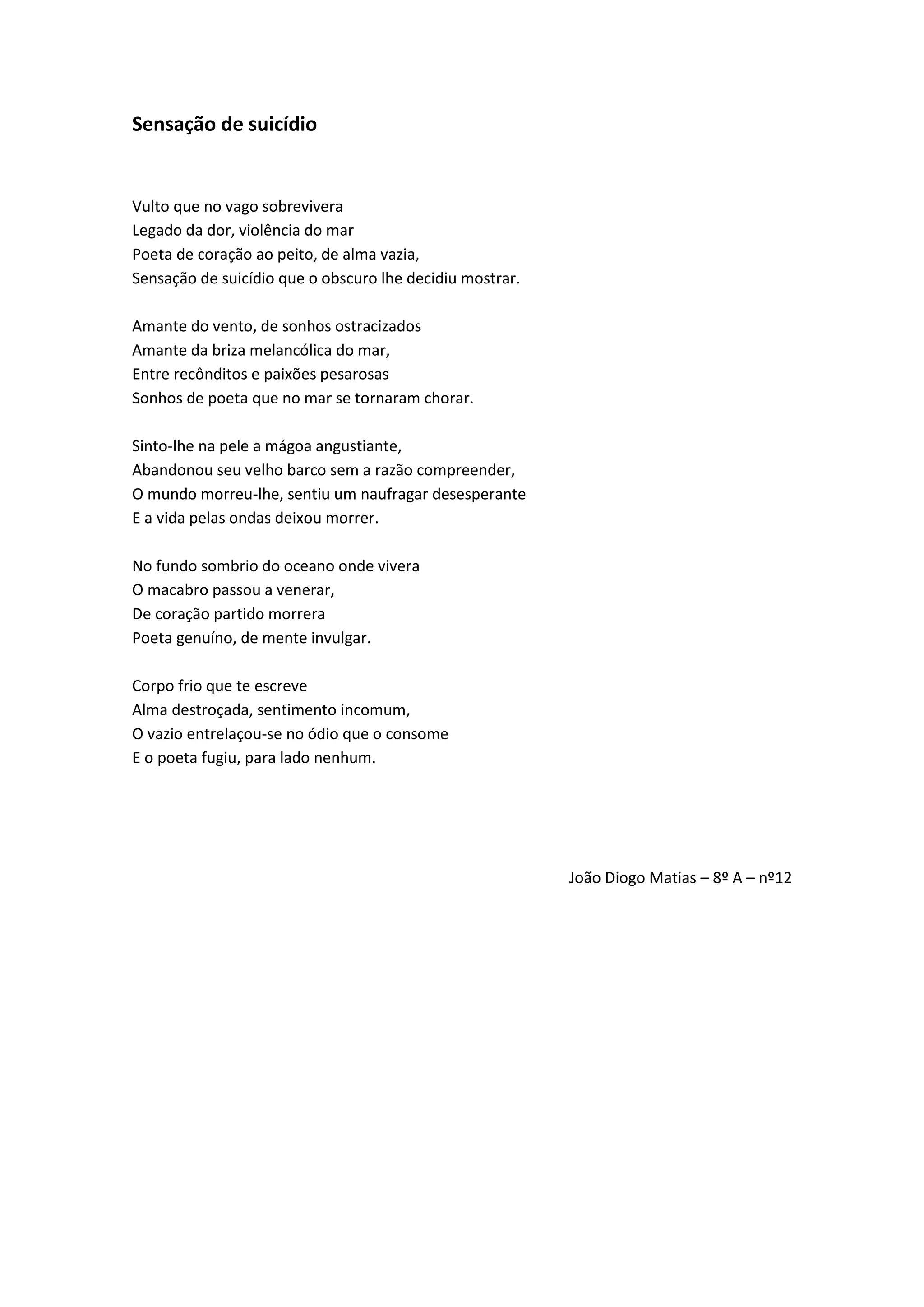 1) O poema descreve a dor e a solidão de um poeta que se sente sem esperança.