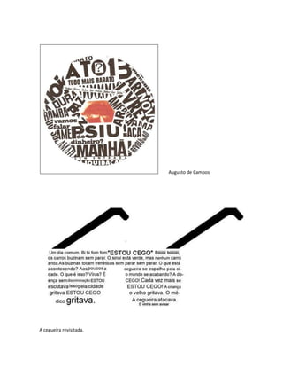 O documento descreve o contexto histórico e cultural da poesia concreta no Brasil na década de 1950, caracterizando o movimento pelo uso de recursos visuais e sonoros de forma inovadora. Apresenta o poema "Tensão" de Augusto de Campos como exemplo que explora as possibilidades visuais e sonoras das palavras de forma estruturada.