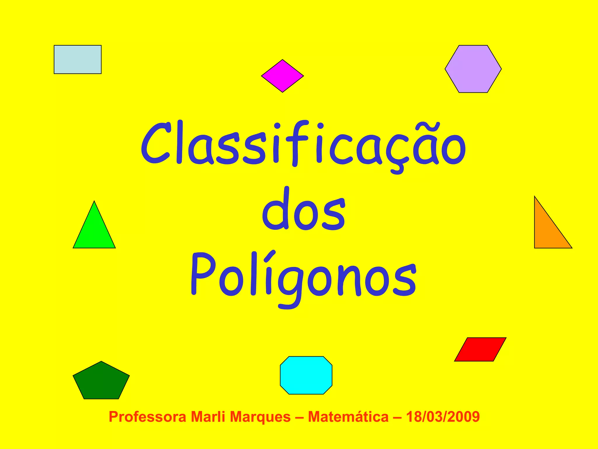 O documento define polígono como uma figura geométrica de vários ângulos e lados, e lista alguns polígonos específicos de acordo com o número de lados, como triângulo, quadrilátero e pentágono. Ele também descreve o jogo Tangram e sites com jogos online envolvendo polígonos.