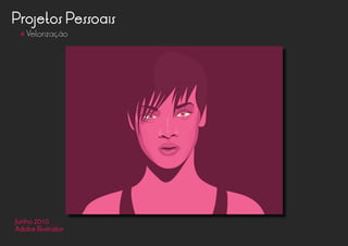 Este portfólio contém vários projetos pessoais e trabalhos acadêmicos realizados entre 2009-2014 utilizando softwares como Adobe Illustrator, Photoshop e InDesign. Os projetos incluem identidade visual, design de embalagens, edição de livros, fanpages e materiais para eventos. Muitos projetos envolvem estamparia e design gráfico para camisetas, cases de celular e material publicitário.