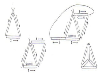 1) O documento discute a história e construção dos poliedros, figuras geométricas com quatro ou mais faces polígonais.