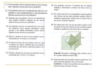 I. O documento descreve conceitos geométricos como regiões poligonais, poliedros convexos, elementos de um poliedro convexo como faces, arestas e vértices.