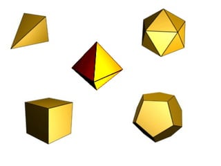 2) Platão foi o primeiro a demonstrar que existem apenas cinco poliedros regulares: cubo, tetraedro, octaedro, dodecaedro e icosaedro.
